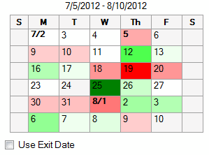 For strategies that are holding at least one night, a checkbox is shown below the calendar called "Use Exit Date". By default, a day will have trades that were entered on that day. Checking this checkbox will redisplay the calendar with each day having trades that were exited on that day.