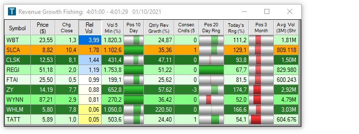 Instead of showing a real-time stream of event-based alerts as displayed in an Alert Window, the Top List Window updates its list of filtered symbols every 30 seconds. It is akin to an automatically refreshing and updating spreadsheet and can be sorted in many different ways.