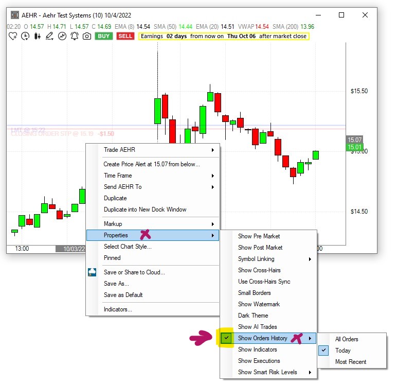 Please note, you need to be connected to our Brokerage Plus Module for order markers to show on the charts.