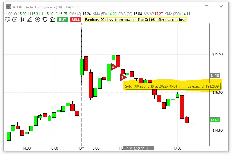 On mouse hover, these flags will provide trade details such as Share Size, Execution Price, Date and Time as well as the Execution ID.