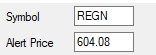 It will show the Symbol and the Alert Price you have defined, as well as the Current Price of the stock, and the Distance in Dollars, to your Price Alert Level.
