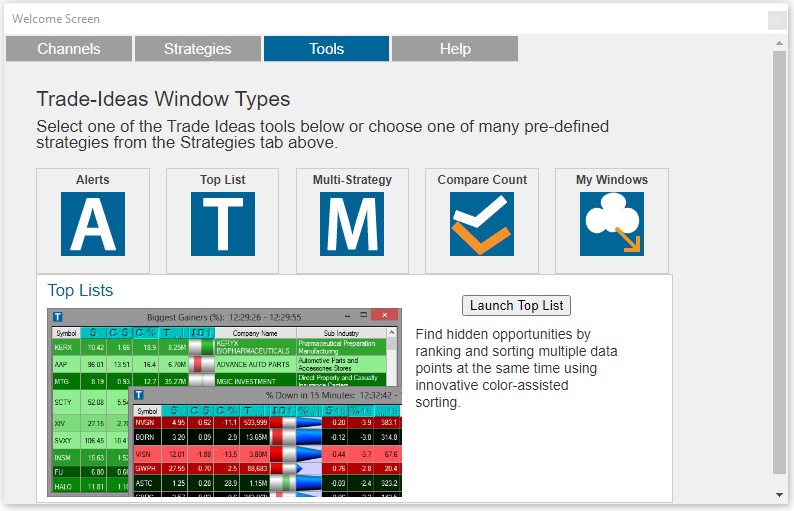 In addition to that, it describes some of the Trade Ideas Windows and Tools and provides easy access to them.