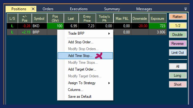 To add a Time Stop to your trade, highlight your position, then right-click and select Add Time Stop. Thereafter, choose a time.