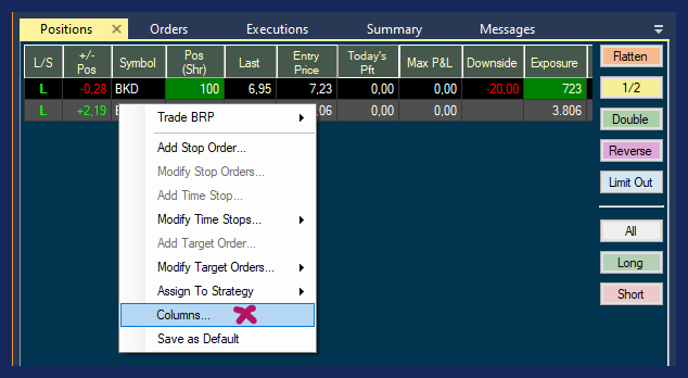 To add more columns right-click into the Positions Tab field and select Columns.