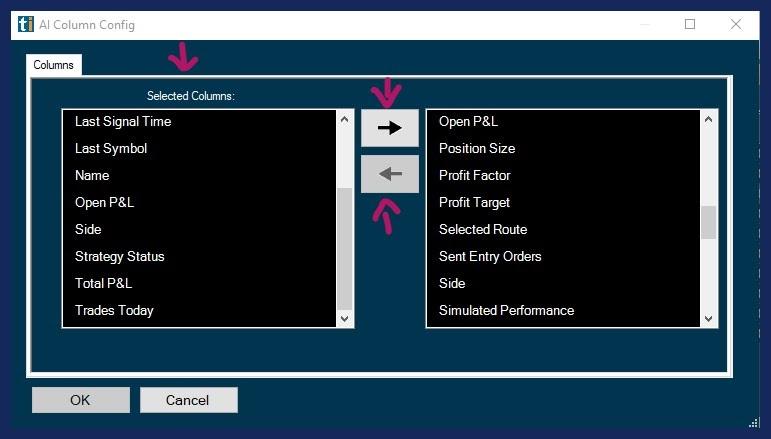 The left-hand side shows the already listed columns, the right-hand side shows the columns that can be added.