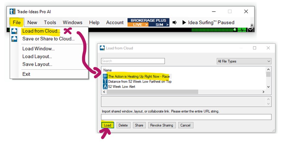 Just go to the Toolbar, open the File Tab and choose Load from Cloud.