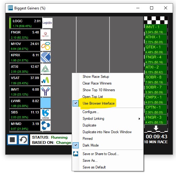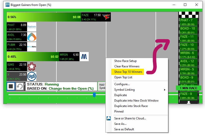 To only see the top 10 Winners, right-click into the window and select Show Top 10 Winners