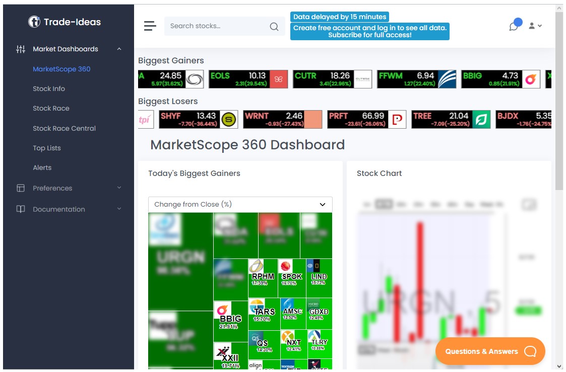 The Trade Ideas Market Dashboards are a browser-based platform designed to offer a flexible, on-the-go solution for tracking and analyzing stock market activity from any device. Unlike the TI Pro software, which is a more feature-intensive desktop application, our Market Dashboards are streamlined for web access, allowing users to monitor essential market insights without needing a dedicated desktop setup.