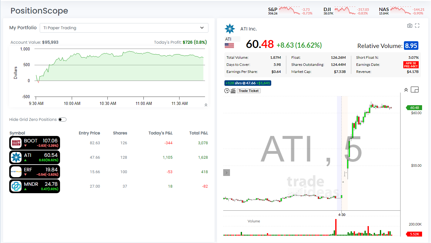 The Position Scope Dashboard enables you to efficiently manage your paper trades. Here, you can view all submitted orders, recent trade executions, and a summary of your current positions, including your P&L.