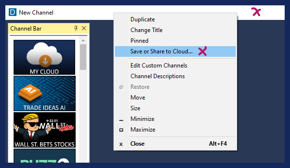 1. Right-click into the Dock Header and select Save or Share to Cloud