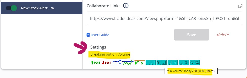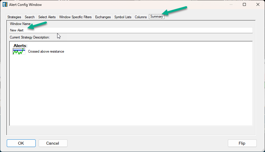 The name and setting of your Alert Window will automatically be displayed under Settings.