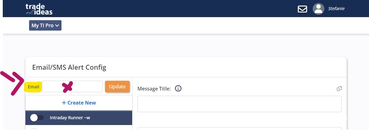 Next, enter the Title your email notifications will carry. This could, for example, be the name of your Alert Window.