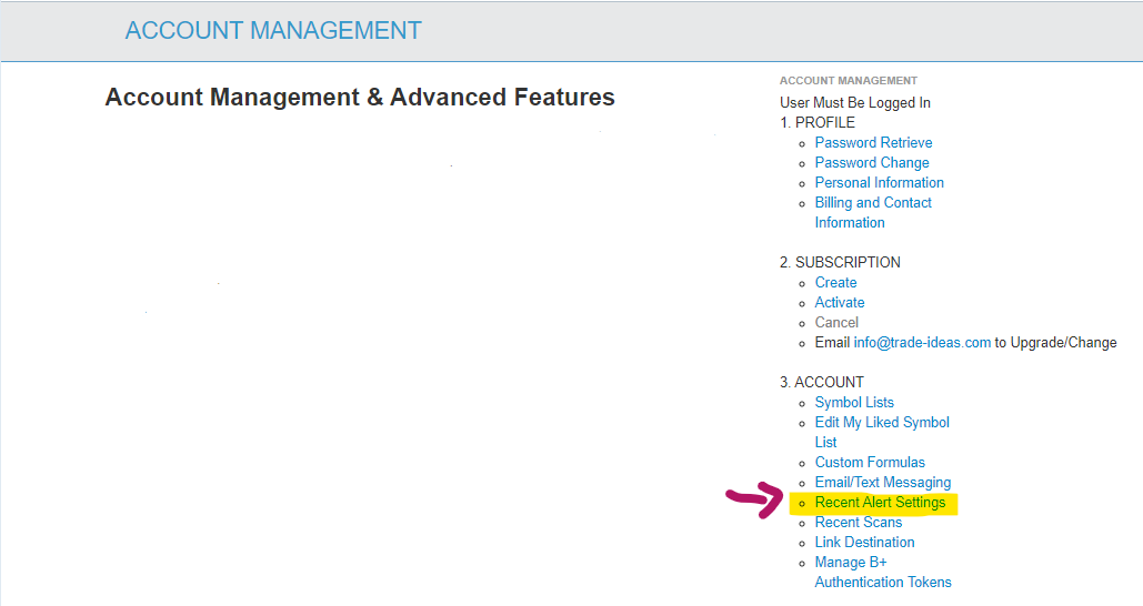 To remove the strategies that are listed under Recent Settings, head to your Accounts Management Page on our website and log in with your username and password.